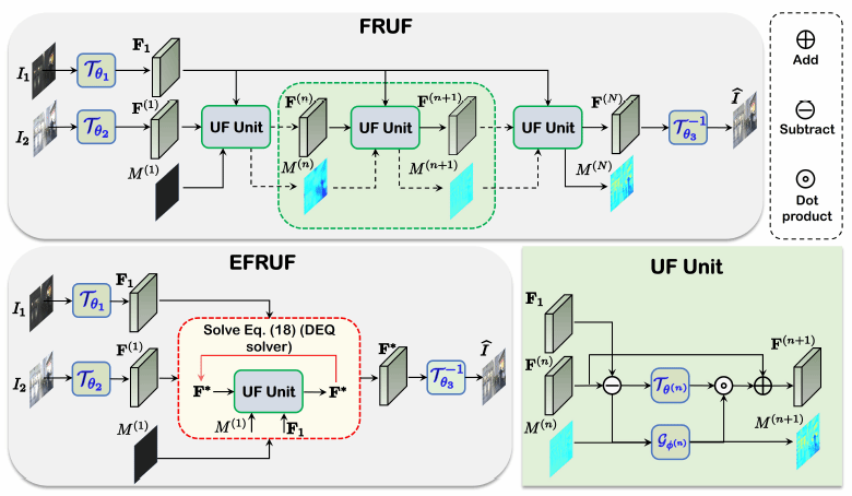 该论文提出了一种基于梯度迁移学习和融合规则展开的通用图像融合方法。针对现有深度学习方法难以有效利用跨任务互补信息以及依赖经验网络设计的问题,该方法首先提出一种顺序梯度迁移框架,利用图像梯度有效捕捉不同融合任务间的互补结构细节;同时,将基本的图像融合规则展开并集成到深度平衡模型中,构建了能够统一处理多种融合任务的高效通用网络。在多聚焦、多曝光和红外可见光图像融合任务上,该方法不仅生成具有更丰富结构信息的图像,而且在客观指标上达到高度竞争性能。此外,在未见过的医学图像融合任务上的泛化实验表明,该方法显著优于现有方法。