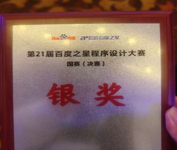12月7日,在第21届“百度之星”程序设计竞赛全国总决赛中,2023级吴晗同学从全国千余名选手中脱颖而出,荣获银奖,这也是我校在该赛事中取得的第三枚奖牌。