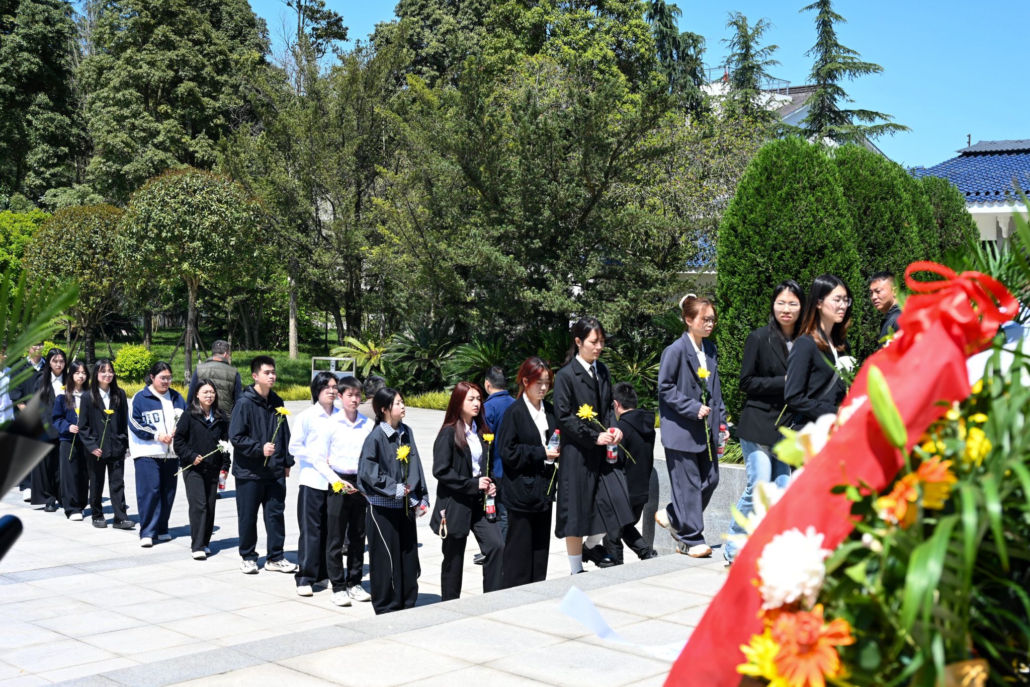 学生代表向革命烈士致悼词,全体人员向革命烈士敬献鲜花,并逆时针瞻仰烈士英雄名录碑,以最质朴的方式表达对先烈的敬意。
