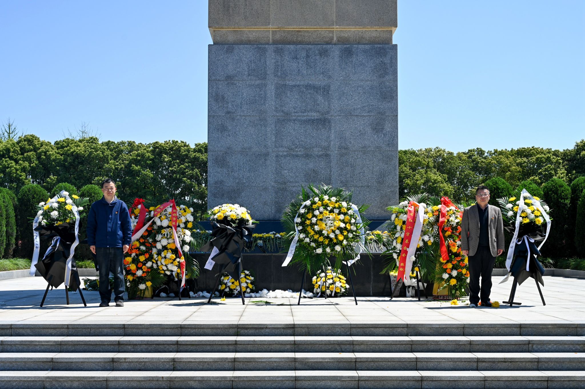 保卫处处长、武装部部长刘枭,计算机与人工智能学院本科生第一党支部书记林飞代表单位向革命烈士敬献花篮,并整理挽联缎带,深切追思为民族独立、国家解放和社会主义建设献出生命的革命烈士。